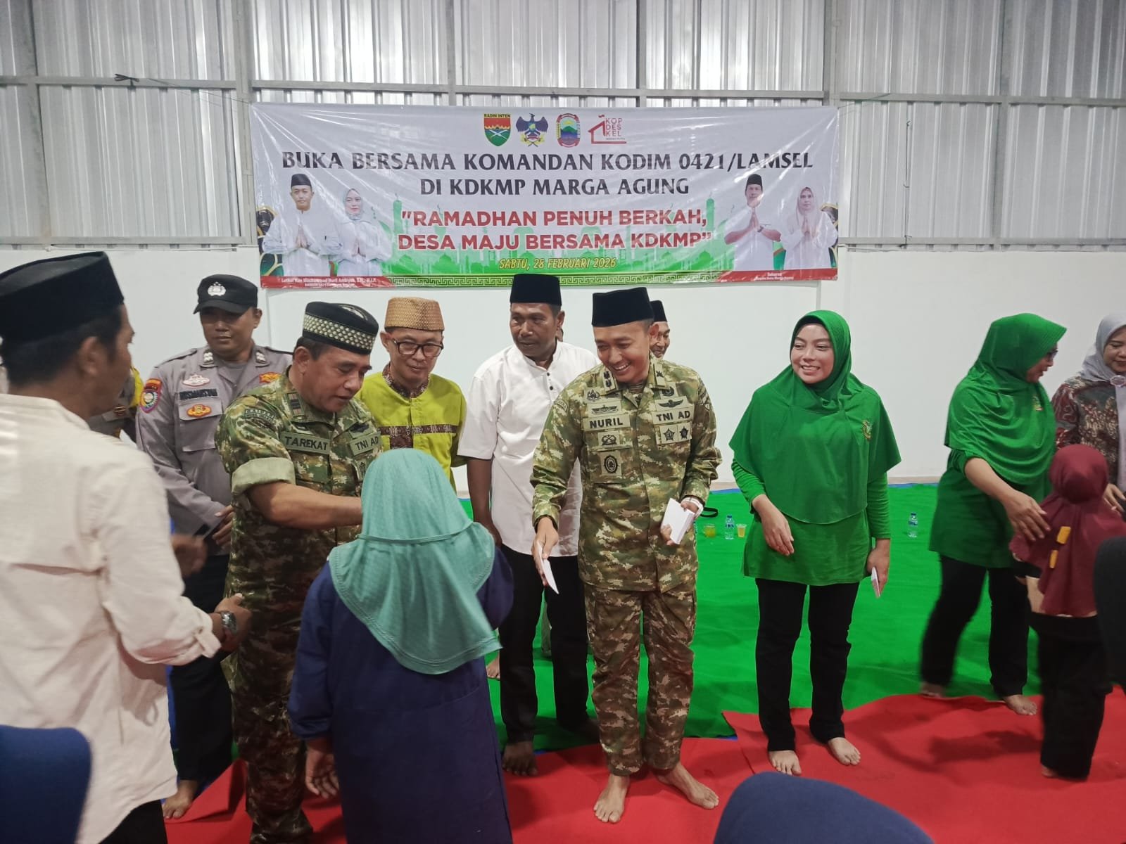 Kodim 0421/LS melaksanakan kegiatan sosial berupa penyerahan santunan kepada anak-anak yatim di KDKMP Marga Agung, Kecamatan Jati Agung. Kegiatan ini