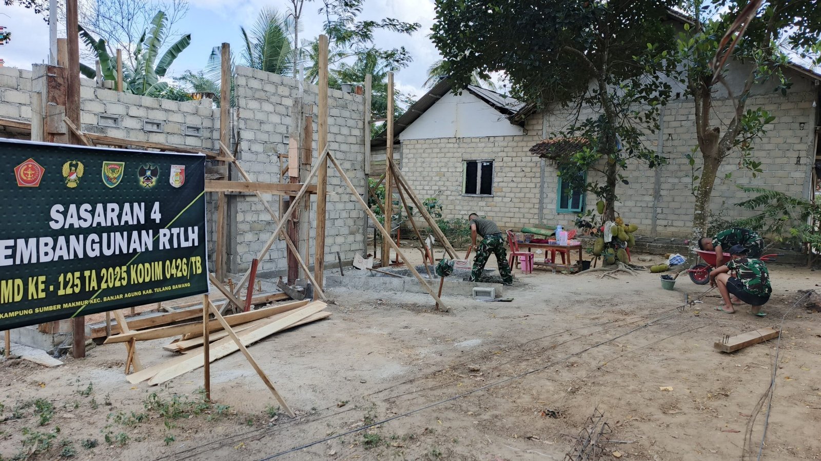 Tulang Bawang, 2 Agustus 2025 — Pekerjaan pembangunan RTLH Sasaran 4 program TMMD ke-125 Kodim 0426/Tulang Bawang yang berlokasi di