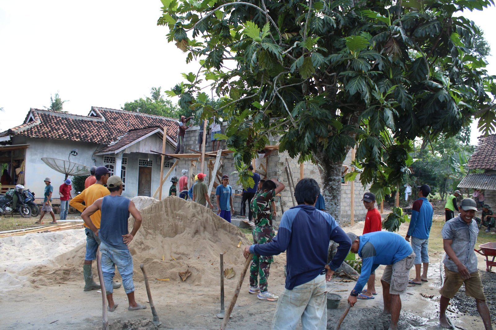 Pengecoran Talang Jadi Fokus RTLH Sasaran 3 TMMD ke-125 Kodim 0426/Tulang Bawang di Kampung Agung Dalam