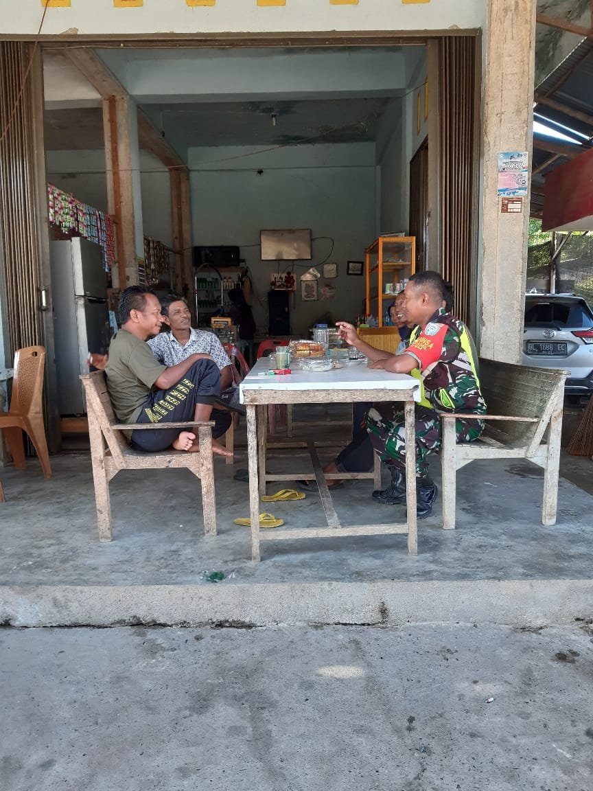 ACEH BARAT – Babinsa Koramil 01/Sungaimas Kodim 0105/Abar, Serda Yuslianto, melaksanakan kegiatan Komunikasi Sosial (Komsos) dengan mendekatkan diri kepada warga