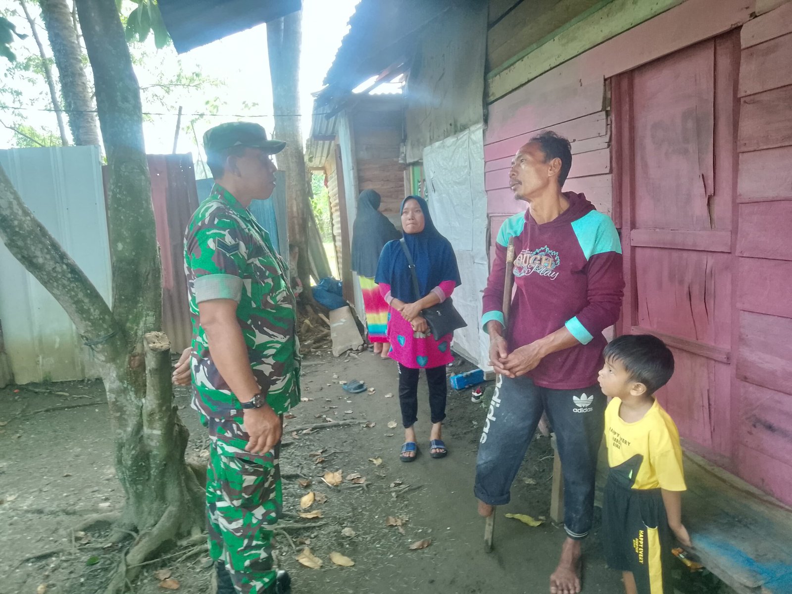 ACEH BARAT – Babinsa Koramil 07/Johan Pahlawan, Kodim 0105/Aceh Barat, Sertu Munawar, melaksanakan kegiatan komunikasi sosial (komsos) bersama masyarakat Desa