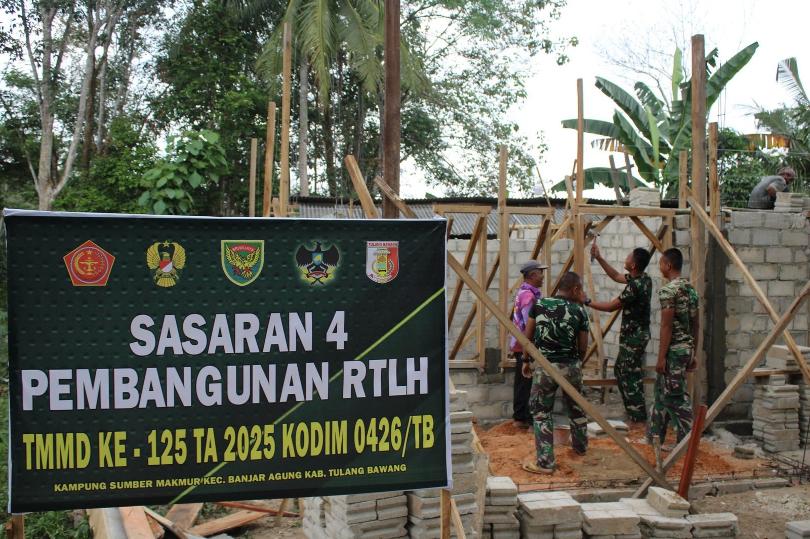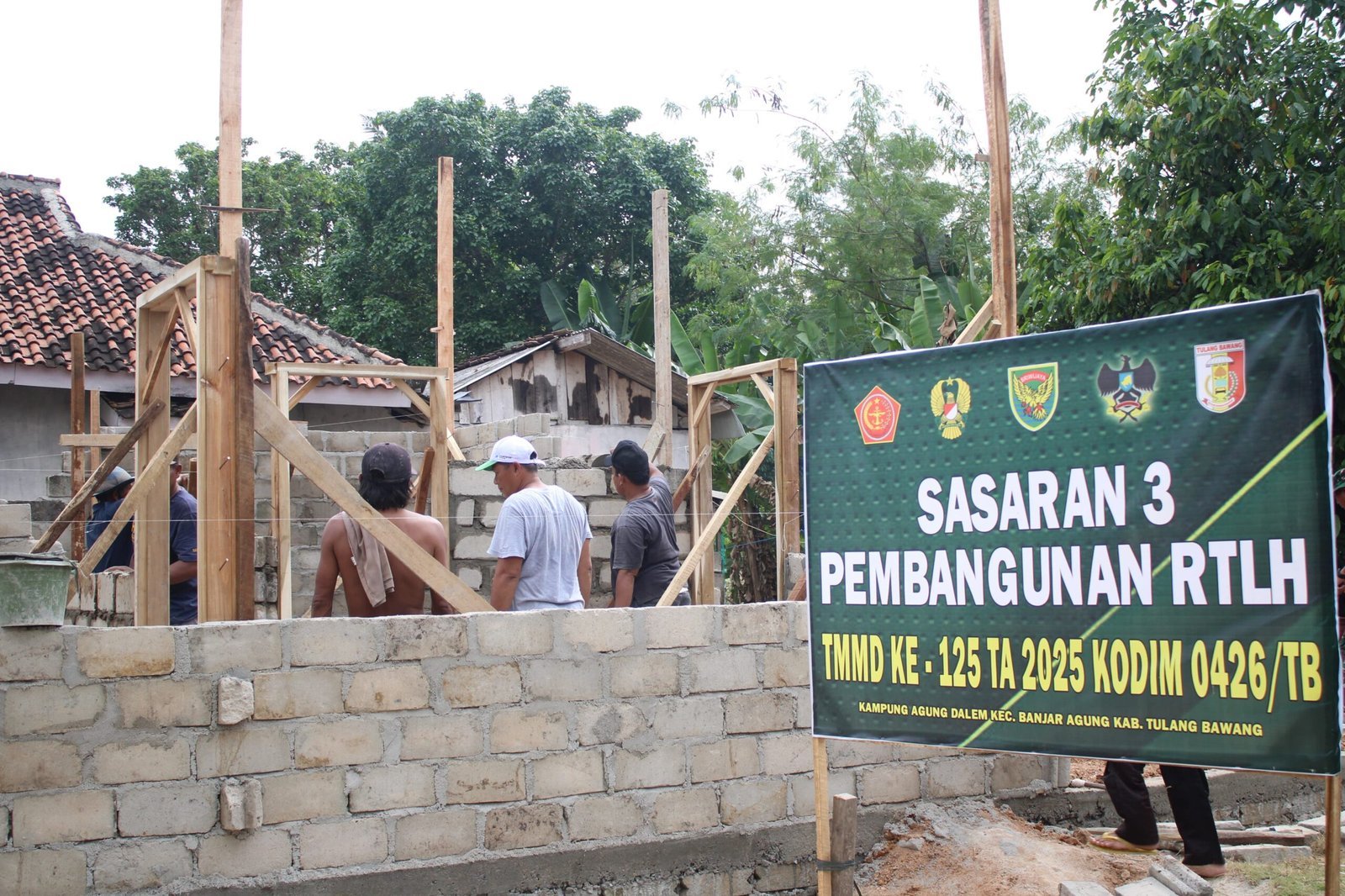 Kegiatan pembangunan Rumah Tidak Layak Huni (RTLH) dalam program TMMD ke-125 Kodim 0426/Tulang Bawang terus berlangsung dengan progres yang menggembirakan.
