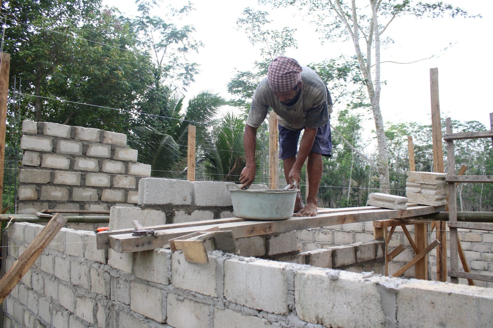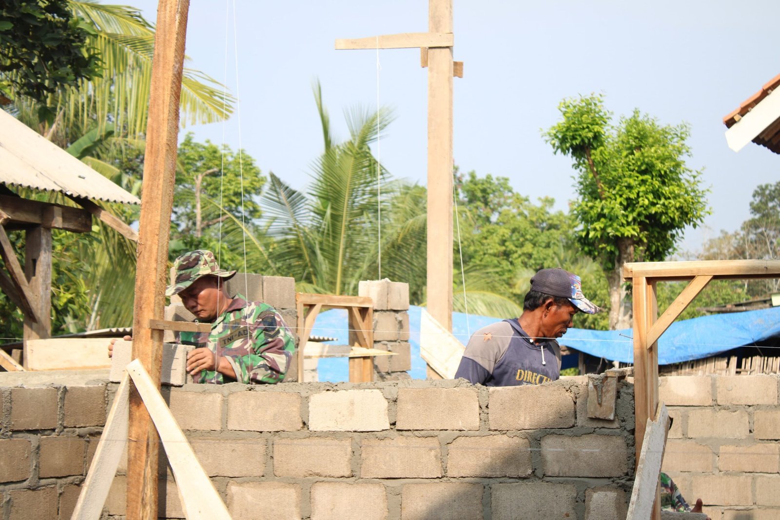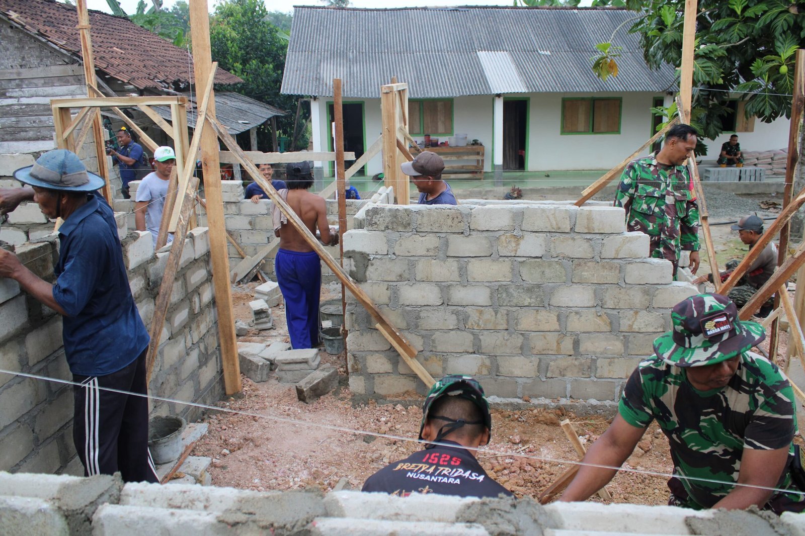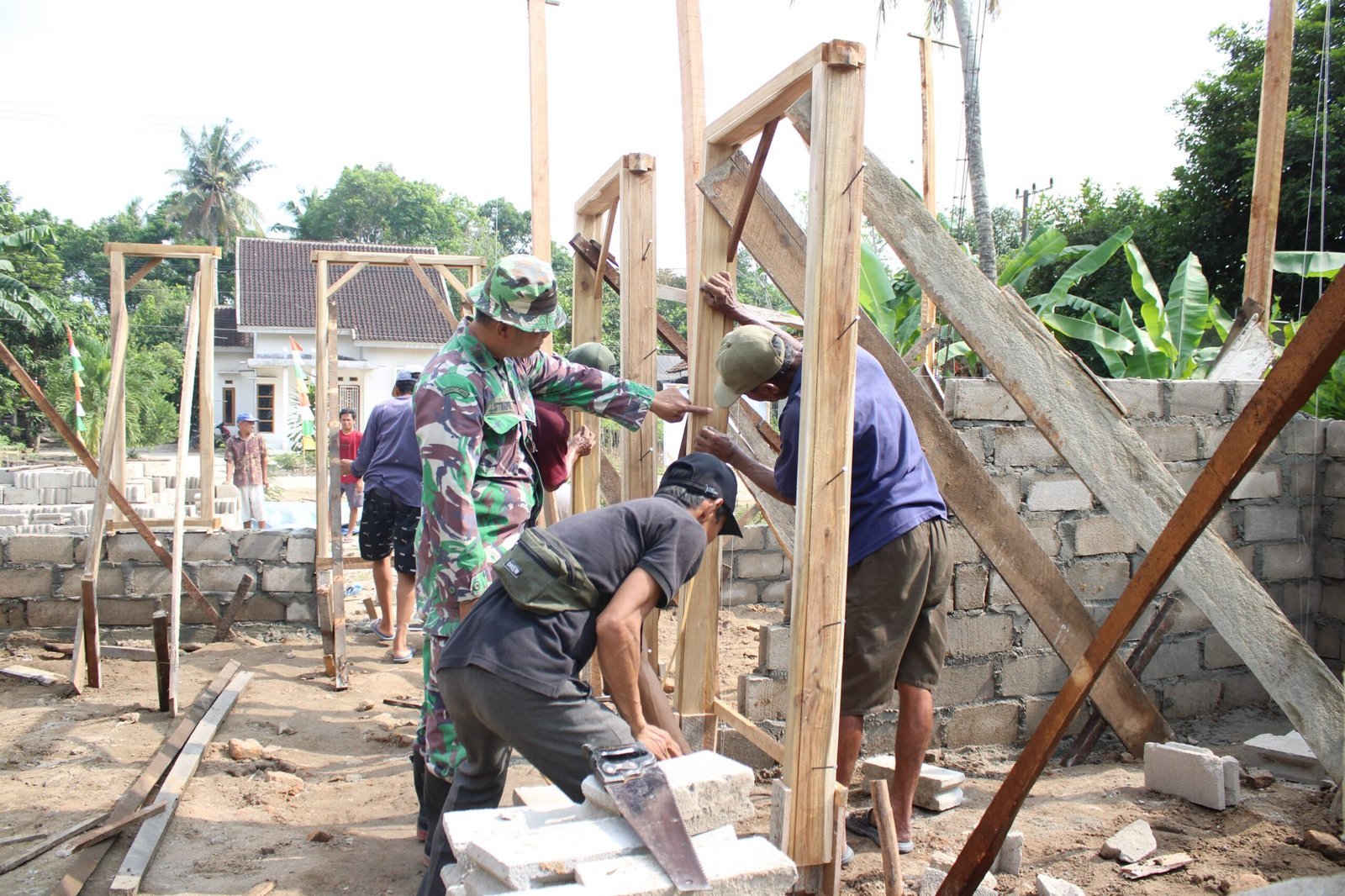 Selain pemasangan bata, pekerjaan lanjutan dalam pembangunan RTLH sasaran 1 di Kampung Moris Jaya pada TMMD ke-125 Kodim 0426/Tulang Bawang