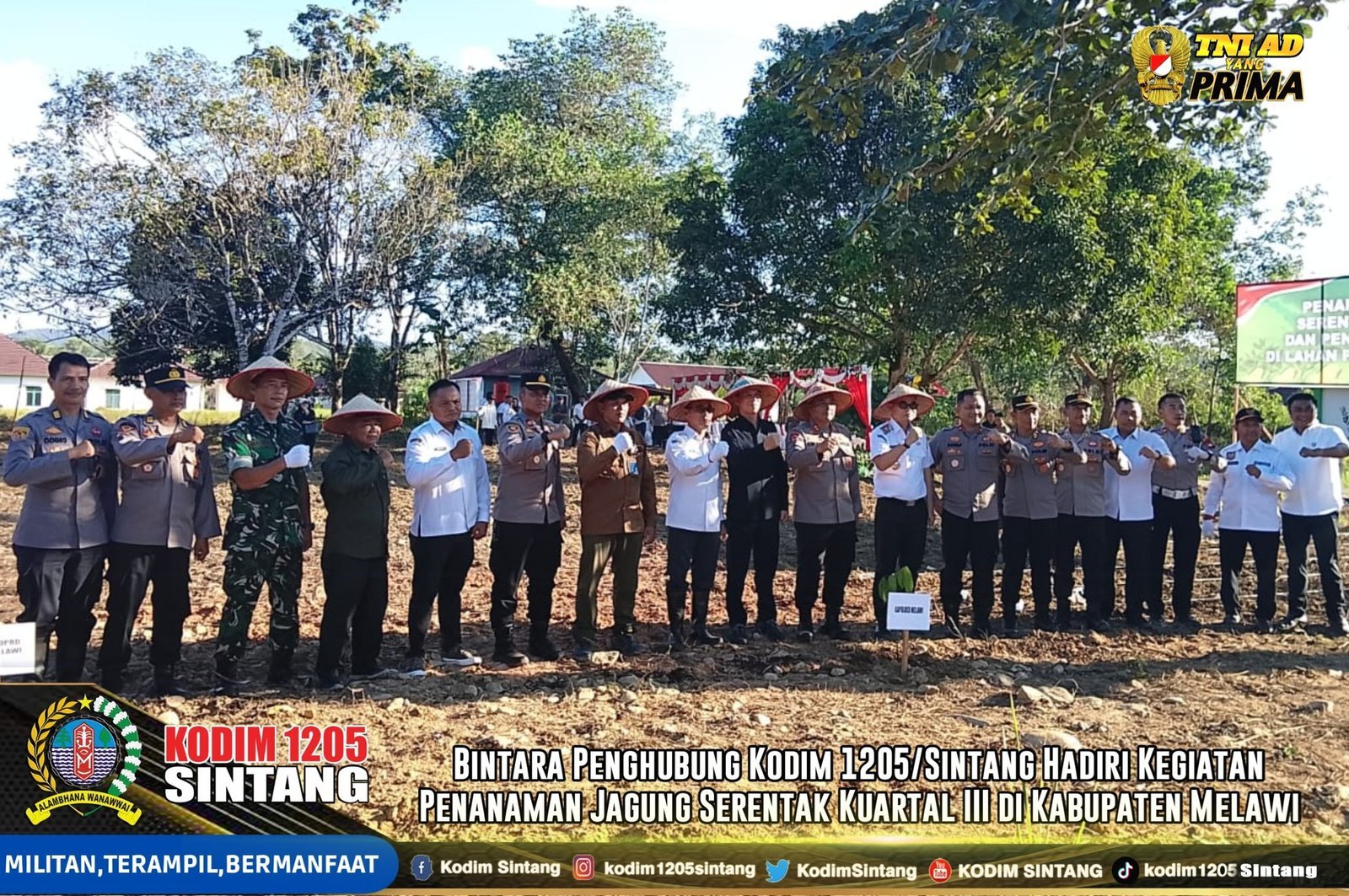 Melawi – Pelda Dabno selaku Bintara Penghubung Kodim 1205/Sintang untuk wilayah Kabupaten Melawi, menghadiri kegiatan Penanaman Jagung Serentak Kuartal III
