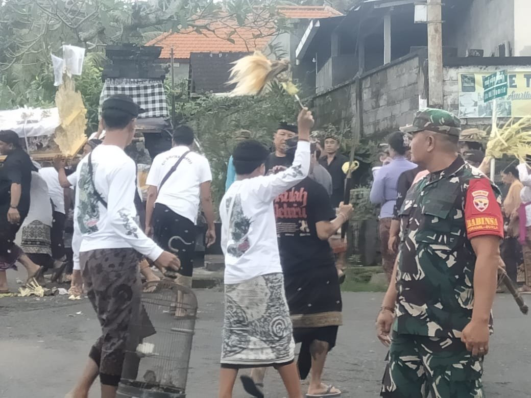 Klungkung,- Konsistensi terus diberikan aparat keamanan di Desa Takmung dalam rangka memastikan rangkaian upacara atma wedana dan manusa yadnya kinebulan