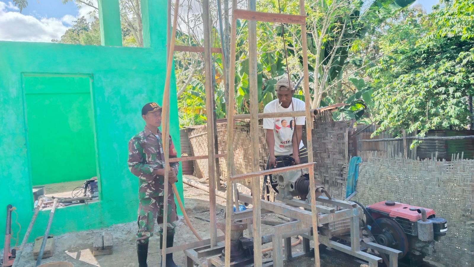 SUMBA BARAT – Sertu Husni H Babinsa Koramil 1613-01/Loli Kodim 1613/Sumba Barat melaksanakan kegiatan Pendampingan Pembuatan Sumur Bor di Desa