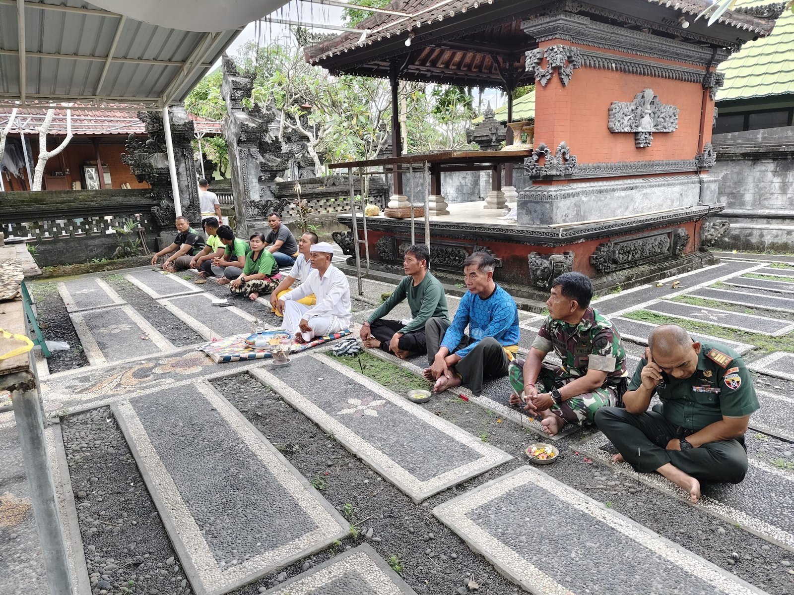 Klungkung,- Babinsa Takmung Serka Yulianta menghadiri sekaligus mengamnakan berlangsungnya upacara Atma Wedana Lan Manusia Yadnya Kinembulan yang digelar Maha Gotra