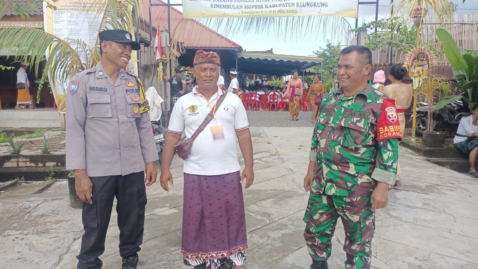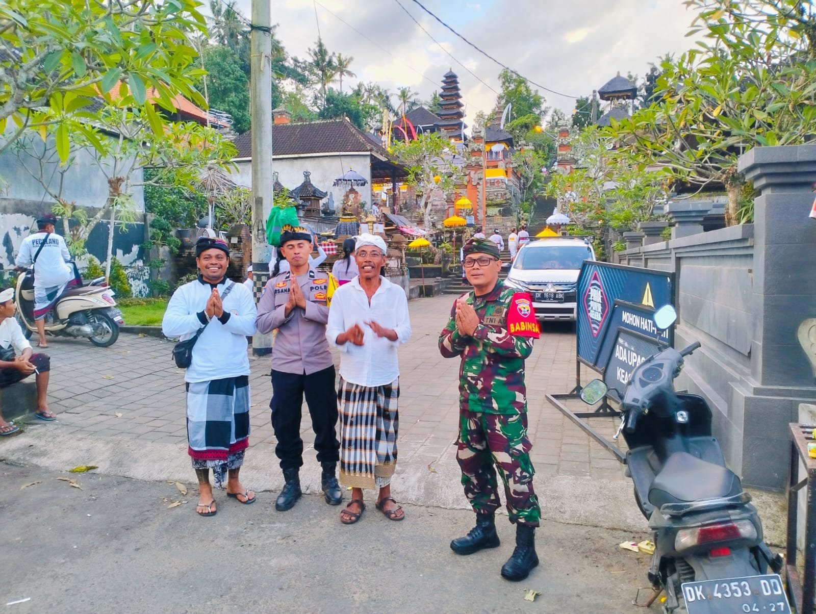 Bangli — Dalam rangka menjaga kelancaran dan keamanan kegiatan keagamaan masyarakat, Babinsa Desa Langgahan Serda I Wayan Darpa bersama Bhabinkamtibmas