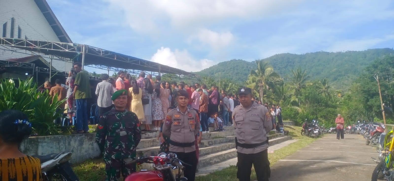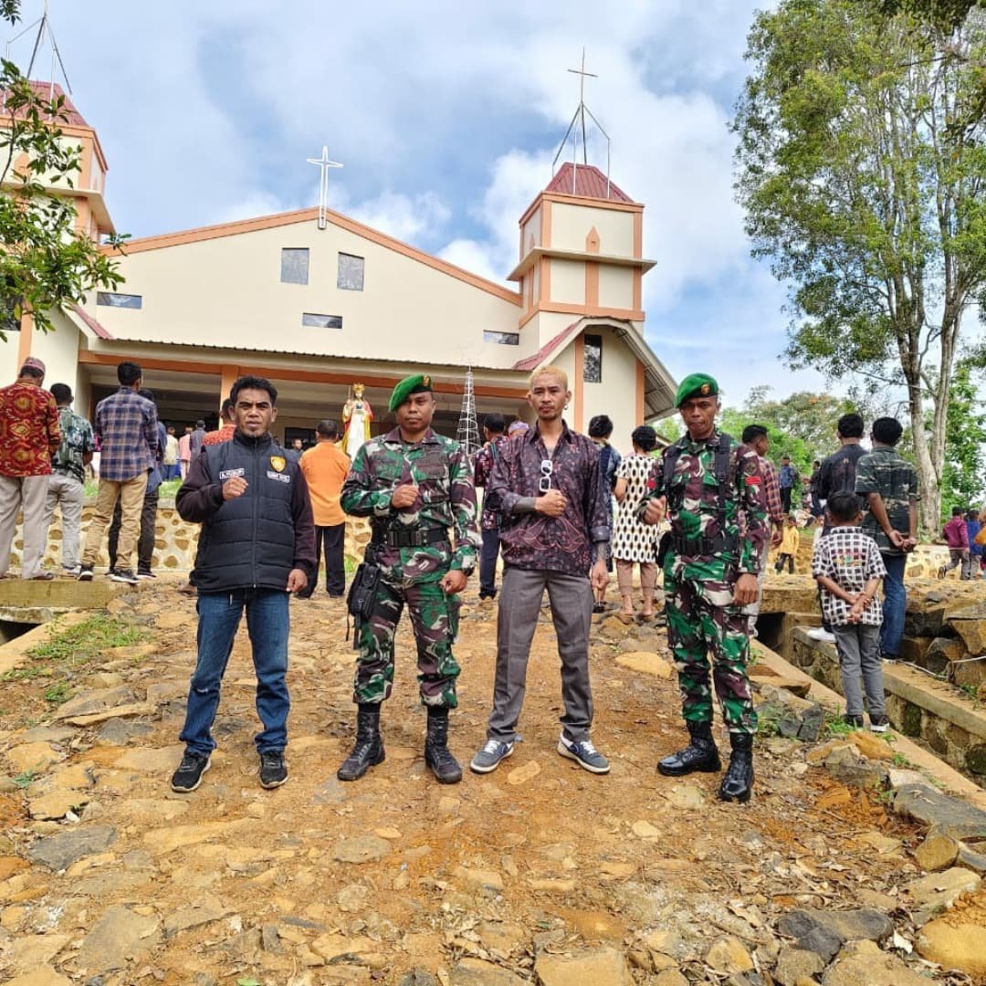 Nagekeo Boawae – Babinsa Koramil 1625-03/Boawae melaksanakan pengamanan misa perayaan Natal di Kapela St. Aloysius Nunukae, Desa Leguderu, Kecamatan Boawae,