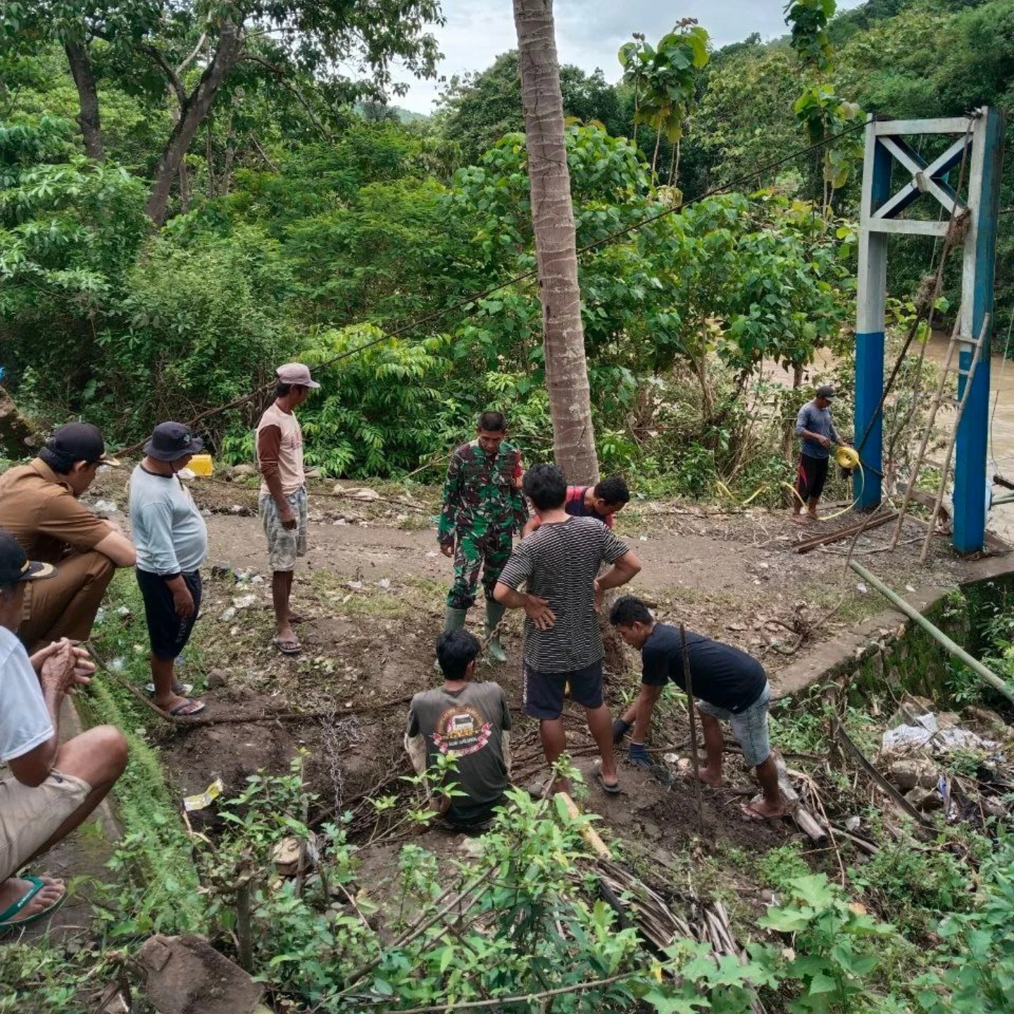 Maros – Babinsa Desa Padaelo, Serka Ali Akbar, bersama warga Desa Padaelo, Kecamatan Mallawa, Kabupaten Maros, melakukan aksi gotong royong