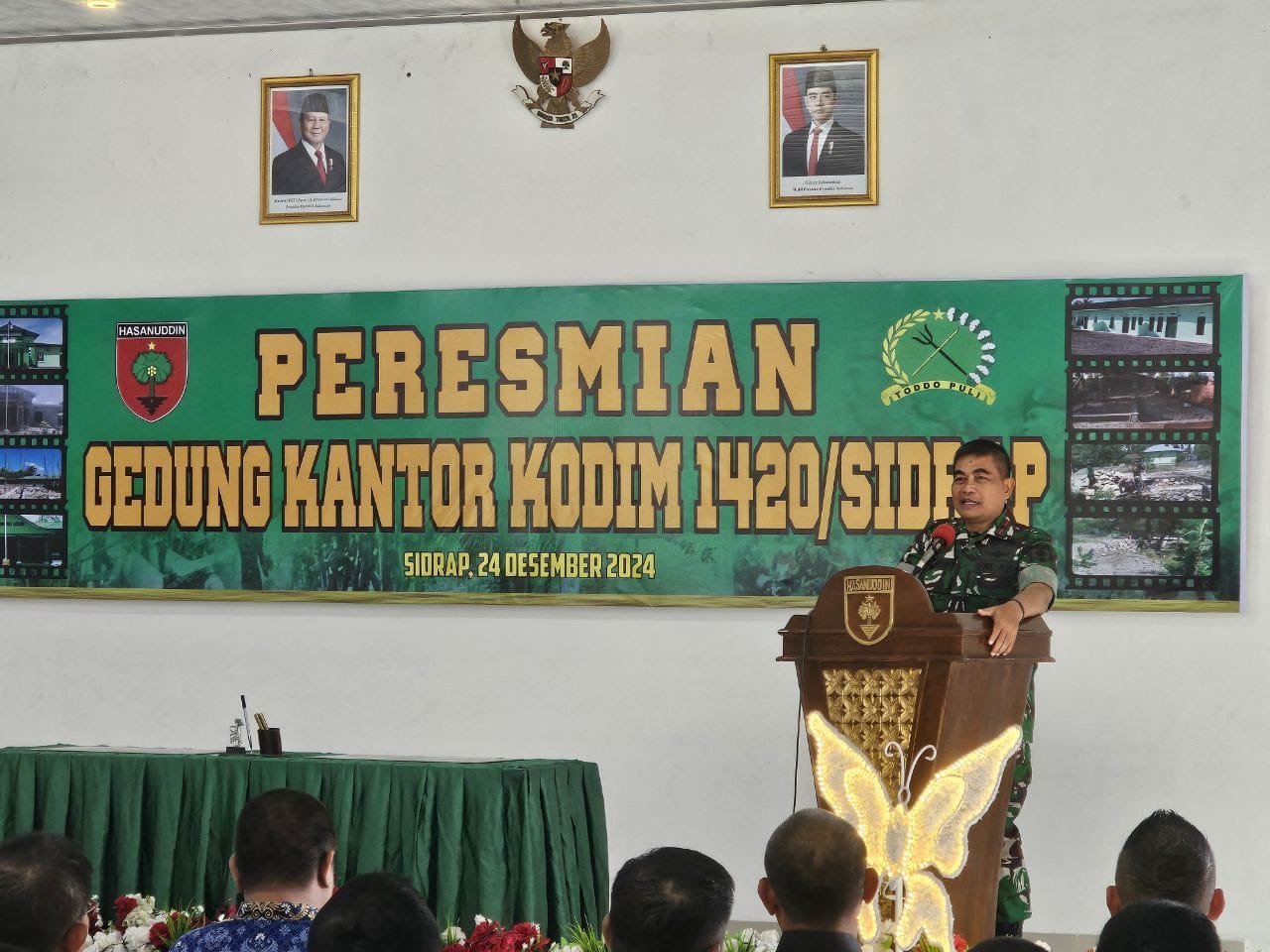 Sidrap, – Danrem 141/Toddopuli, Brigjen TNI Sugeng Hartono, S.E., M.M., meresmikan gedung kantor Kodim 1420/Sidrap dan perumahan prajurit. Acara ini