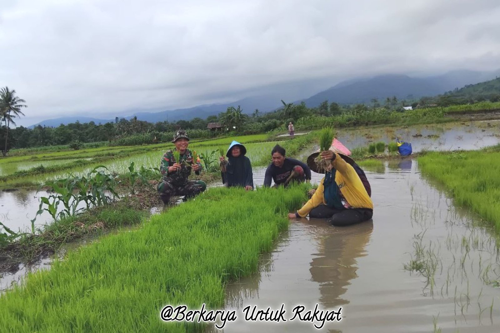 Buol – Babinsa koramil 1305-09/Bokat koptu A. Tampilang melaksanakan kegiatan hanpangan, membantu menanam padi di lahan sawah milik Bapak Kasmir,