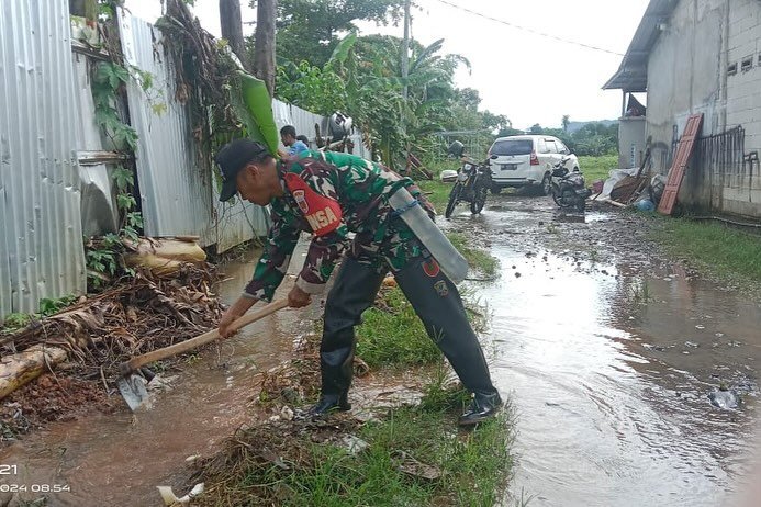 Maros – Bintara Pembina Desa (Babinsa) Sertu Muh. Yusuf Anggota Koramil 1422-04/Mandai Jajaran Kodim 1422/Maros bersama warga binaannya lakukan kerja