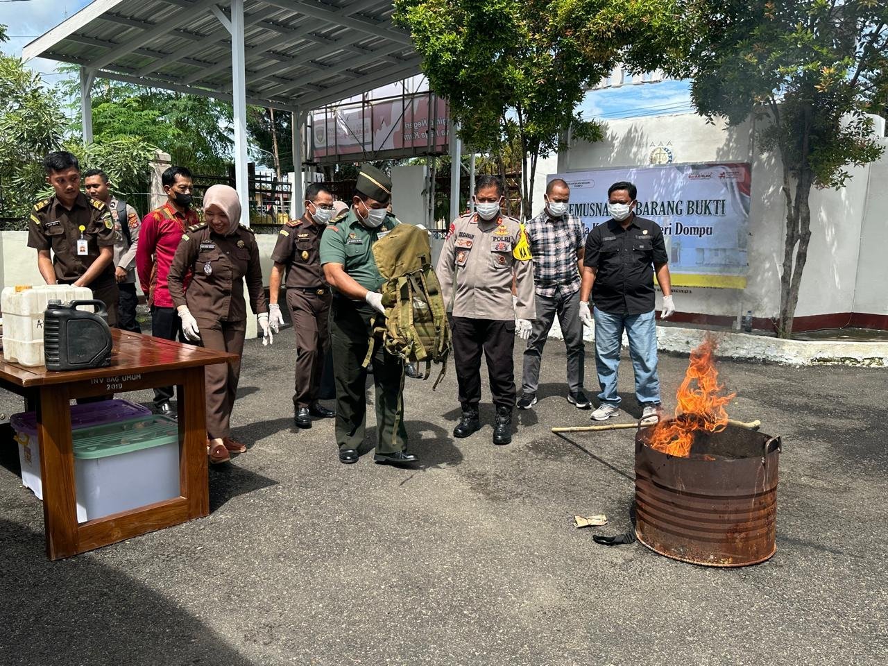 NTB-Dompu,Kasdim 1614/Dompu, Mayor Inf. I Wayan Sulendra, S.H., M.H, menghadiri pemusnahan barang bukti yang telah berkekuatan hukum tetap (inkracht) di