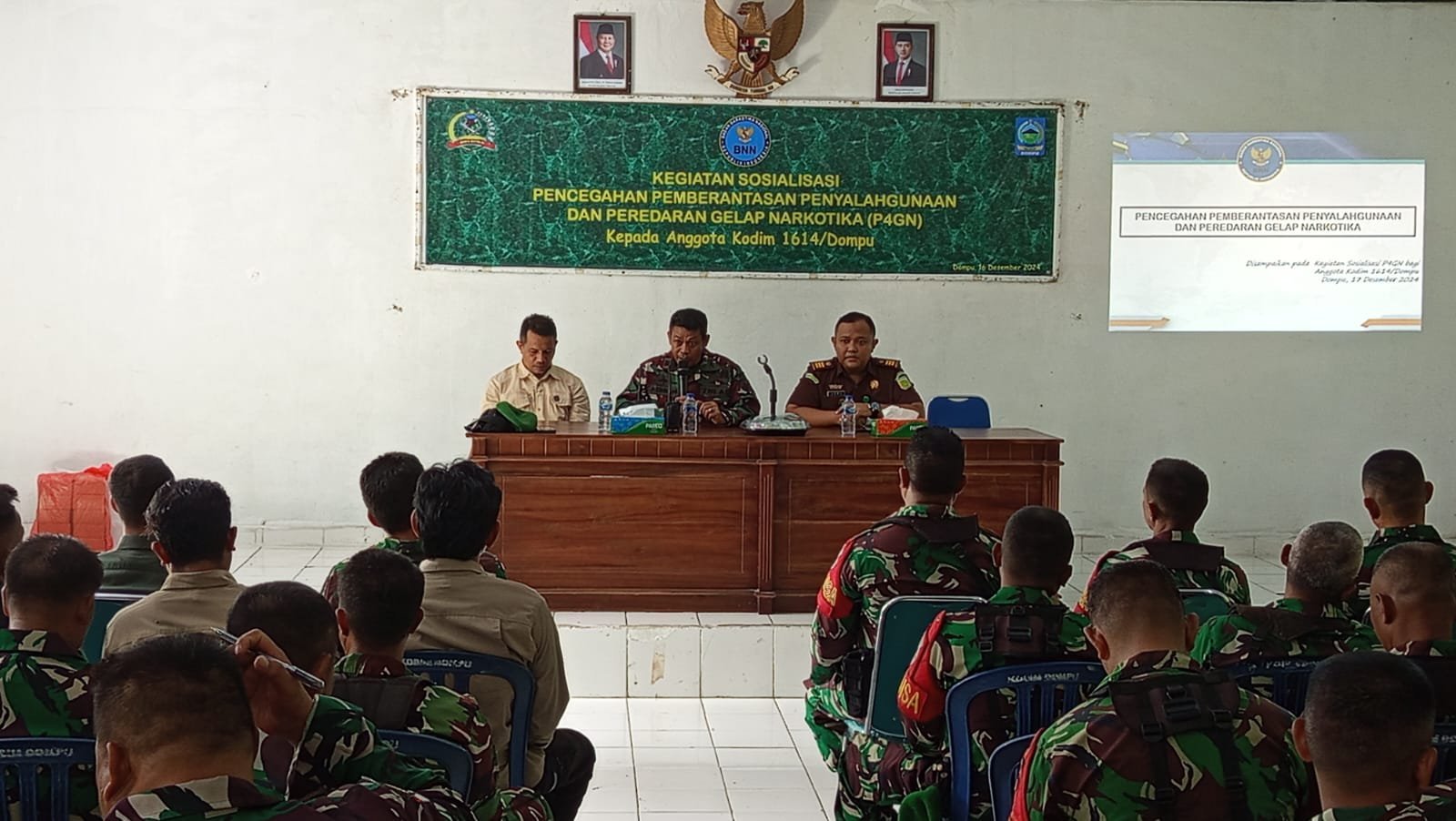 NTB-Dompu,Kodim 1614/Dompu, menggelar sosialisasi Pencegahan Pemberantasan Penyalahgunaan dan Peredaran Gelap Narkotika (P4GN). bertempat di aula Makodim Jln.A. Yani, Kelurahan Dorotangga,