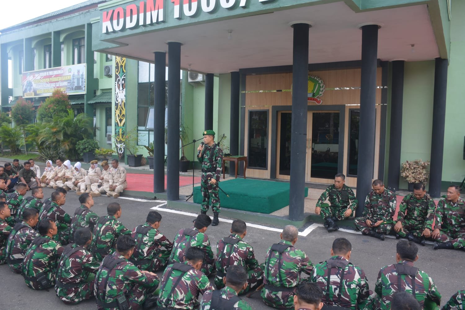 MARTAPURA – Usai memimpin pelaksanaan Upacara Bendera 17-an, Dandim 1006/Bjr Letkol Kav Zulkifer Sembiring, S.E., M.M memberikan “Jam Pimpinan” kepada