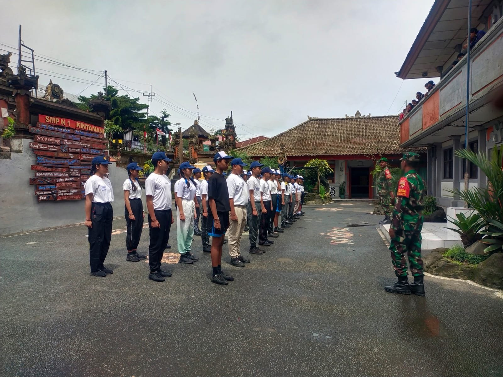 Bangli – Babinsa Koramil 04/Kintamani Serka Wayan Swastika bersama Sertu Wayan Kariasa memberikan Pelatihan PBB Bagi Siswa Calon Osis SMP