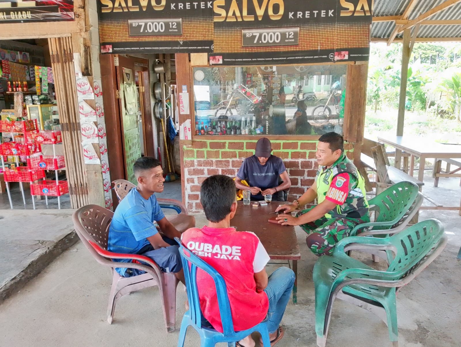 Aceh Jaya – Babinsa Koramil 04/Krueng Sabee Kodim 0114/Aceh Jaya Serda Masrianto melaksanakan Komsos dengan warga binaannya di Desa Keutapang