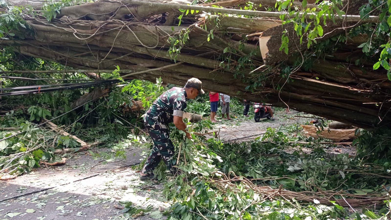 Pahlawan Masyarakat: Babinsa Bersama Warga Bersihkan Jalan Tertutup Pohon Tumbang