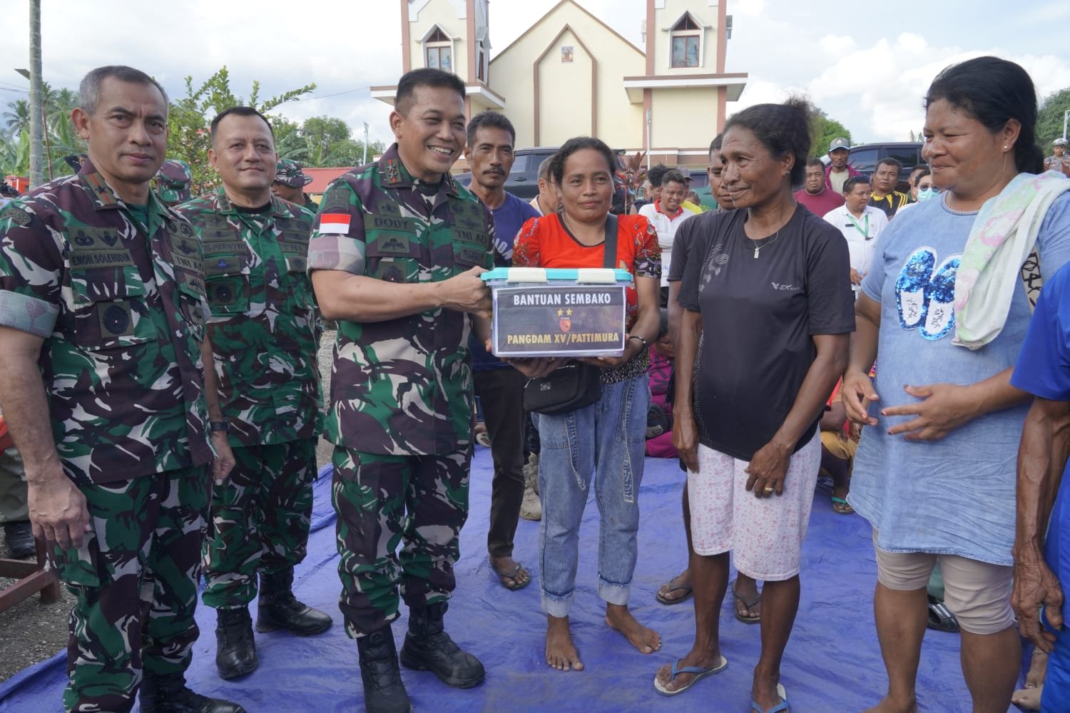 Halmahera Tengah – Mayjen TNI Dody Triwinarto, S.I.P., M.Han., Pangdam XV/Pattimura, melakukan penyaluran bantuan kepada masyarakat yang terdampak oleh konflik di Patani Barat, Kabupaten Halmahera Tengah. Kegiatan ini bertujuan menunjukkan kepedulian TNI dan membantu mempercepat pemulihan kondisi sosial masyarakat. Rabu, 15 April 2026.
