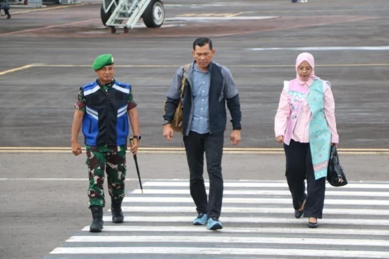 Lubuklinggau – Panglima Komando Daerah Militer (Pangdam) XXI/Radin Inten, Mayjen TNI Kristomei Sianturi, S.Sos., M.Si. (Han), didampingi Ketua Persit Kartika Chandra Kirana Daerah XXI/Radin Inten, Ny. Asti Kristomei Sianturi, bersama rombongan tiba di Bandara Silampari, Kota Lubuklinggau, Provinsi Sumatera Selatan, Rabu sore (22/10/2025) sekitar pukul 15.30 WIB.