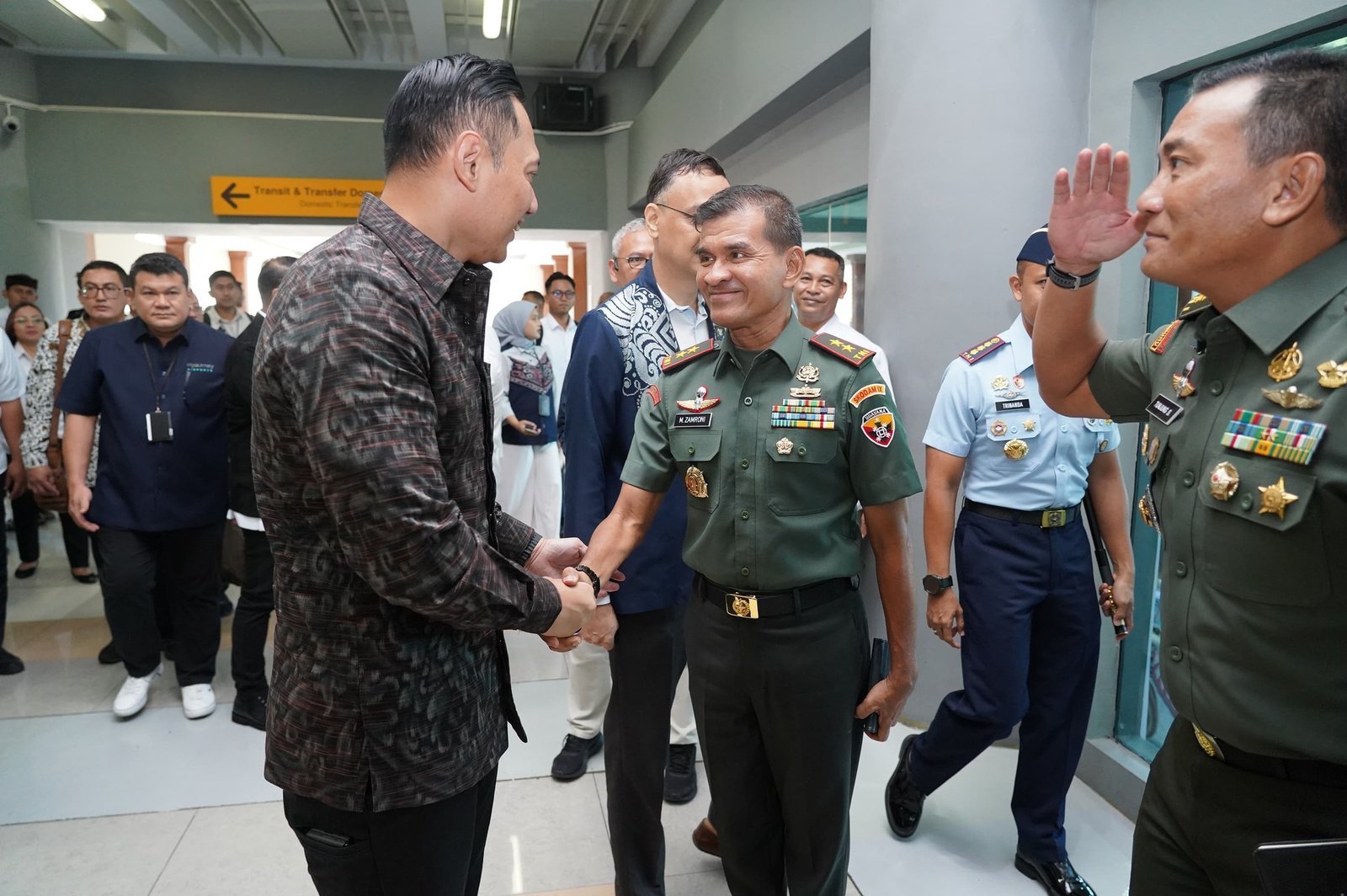 Denpasar – Pangdam IX/Udayana, Mayor Jenderal TNI Muhammad Zamroni, S.I.P., M.Si., turut mendampingi Menteri Koordinator Infrastruktur dan Pembangunan Kewilayahan, Agus Harimurti Yudhoyono, dalam rangkaian kunjungan kerjanya di Bandara Internasional I Gusti Ngurah Rai, Bali, pada Kamis, 23 Januari 2025. Dalam kesempatan tersebut, turut hadir Bapak Herzaki Mahendra Putra, serta sejumlah pejabat terkait.