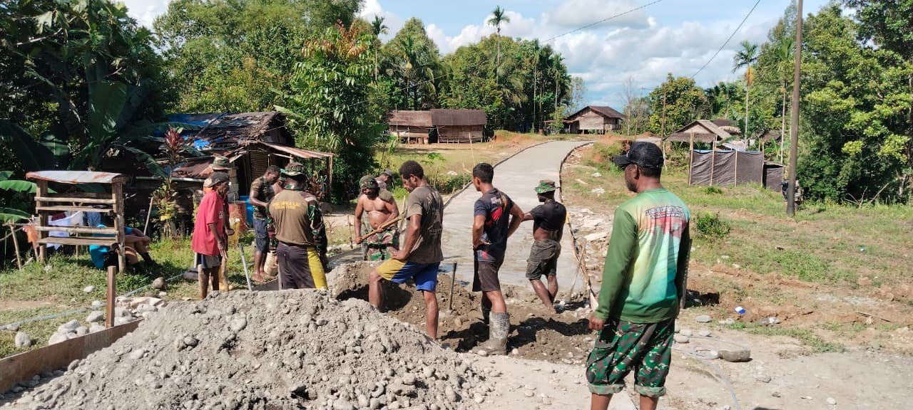 Pantang Menyerah, Gotong Royong TNI dan Warga Percepat Pekerjaan TMMD 126 di Waropko