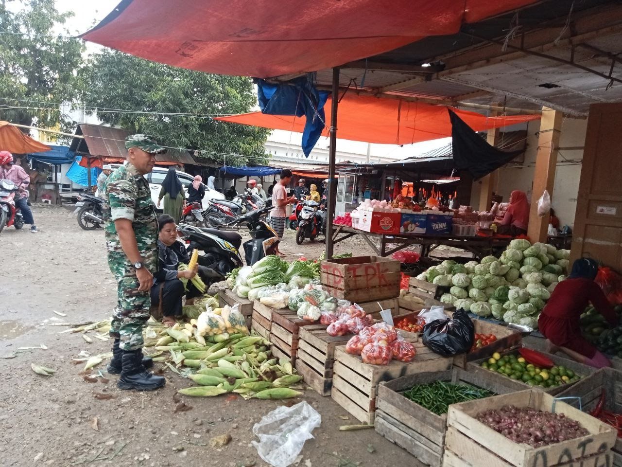 Pantau Ketersediaan dan Harga di Pasar Sentral Rappang, Babinsa Ramil 1420-06/Panca Rijang Pastikan Stabilitas Bahan Pokok