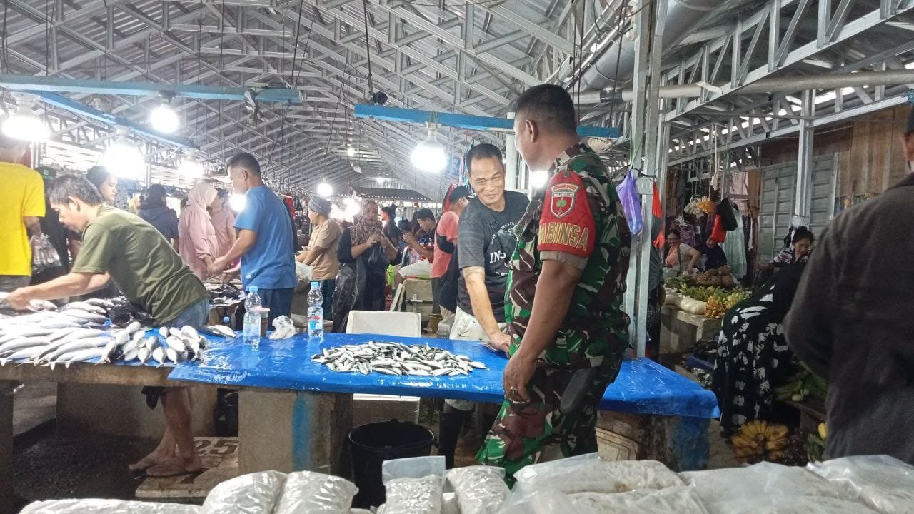 Serma Irwan, Babinsa Koramil 04/Watang Pulu, melakukan inspeksi mendadak di Pasar Tradisional Lawawoi yang terletak di Kelurahan Bangkai, Kecamatan Watang Pulu, Kabupaten Sidrap. Kegiatan ini tidak sekadar rutin tetapi merupakan langkah proaktif untuk memantau stabilitas harga dan menjaga rantai pasokan sembilan bahan pokok (sembako).