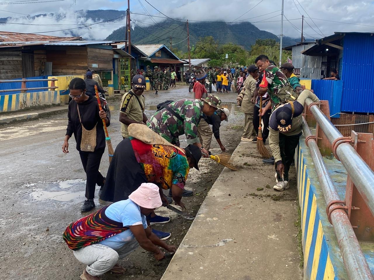 Peduli Lingkungan, Anggota Koramil 1705-04/Moanemani Ikut Kegiatan Jumat Bersih Bersama Polres dan Warga Dogiyai