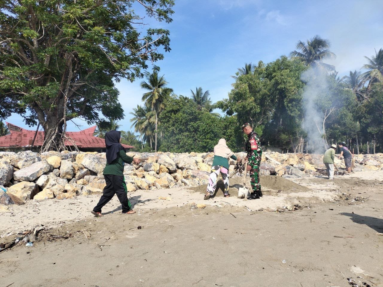 Peduli Lingkungan, Babinsa Bersihkan Pesisir Pantai Tapunopaka