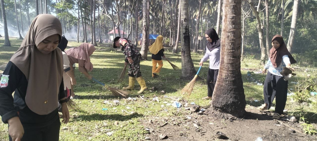 Aksi bersih-bersih pantai yang dikenal dengan lokasi wisata di Kec.Sawa ini, diikuti puluhan warga nelayan. Mereka berjalan kaki di sepanjang pantai dengan memungut sampah dan mengumpulkannya jadi satu. ”Kami ingin mengajak masyarakat untuk peduli terhadap lingkungan sekitar, termasuk kawasan pantai,” ungkap Serka Asmadi