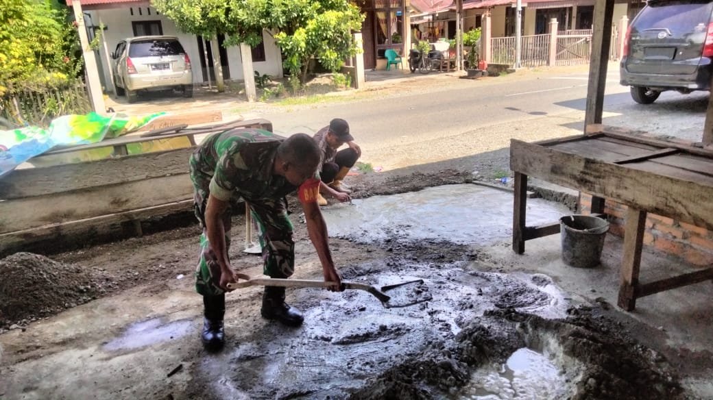 Peduli Sekitar, Serka Amiruddin Bantu Warga Cor Lantai Rumah
