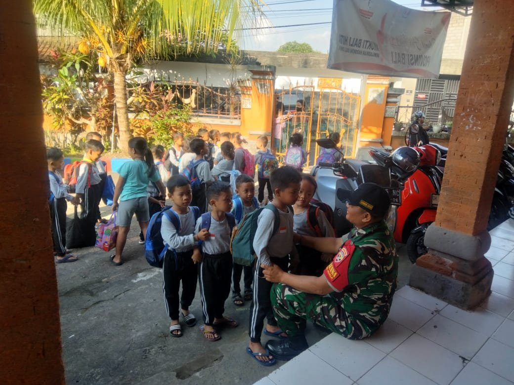 Pagi ini dirinya turun langsung mendampingi TK Negeri Semarapura Kaja untuk memberikan kenyamanan sekaligus memastikan kegiatan yang dilaksanakan anak-anak TK berjalan aman, tertib dan lancar.