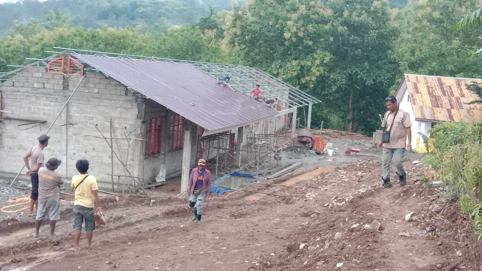 Pemasangan Atap RKB di Desa Sunkaen Tanda Kemajuan TMMD Ke-127 Kodim 1618/TTU