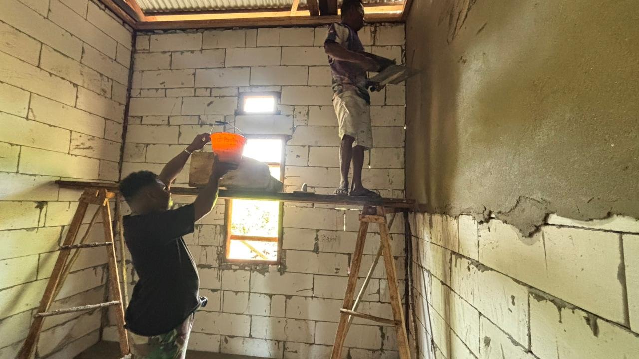 Dalam pelaksanaan kegiatan ini, anggota Satgas dan masyarakat bekerja sama dengan baik untuk menyelesaikan tahap pembangunan rumah. Langkah pemasangan plester ini bertujuan untuk memperkuat struktur bangunan, sekaligus meningkatkan kenyamanan bagi penghuninya.