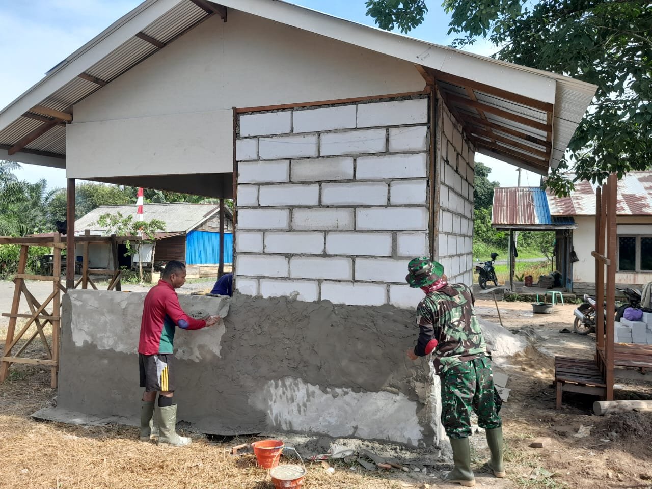 Pembangunan Poskamling TMMD Ke-126 Maju, Lantai dan Dinding Sedang Dikerjakan