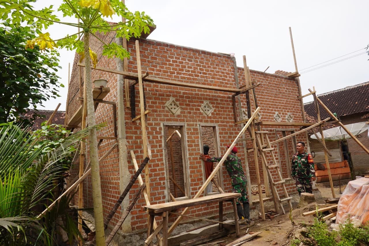 Dengan telah terpasangnya slop atas, proses pembangunan rumah Bapak Ngadino semakin mendekati tahap penyelesaian. Melalui program TNI Manunggal Membangun Desa, Tentara Nasional Indonesia berkomitmen untuk menyediakan hunian yang kuat, aman, dan layak bagi masyarakat, serta memperkuat hubungan antara TNI dan rakyat.