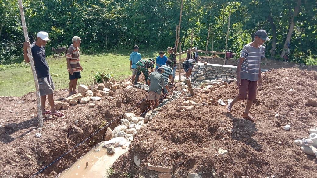 Pada tahap awal, pengerjaan fokus pada pondasi bangunan yang dilakukan secara gotong royong, melibatkan Babinsa dan masyarakat setempat sebagai bagian dari kemanunggalan TNI dan rakyat. Serka Lamberto Da Costa, Babinsa Koramil setempat, turut aktif di lapangan, bekerja sama dengan warga membangun pondasi dengan semangat kebersamaan.