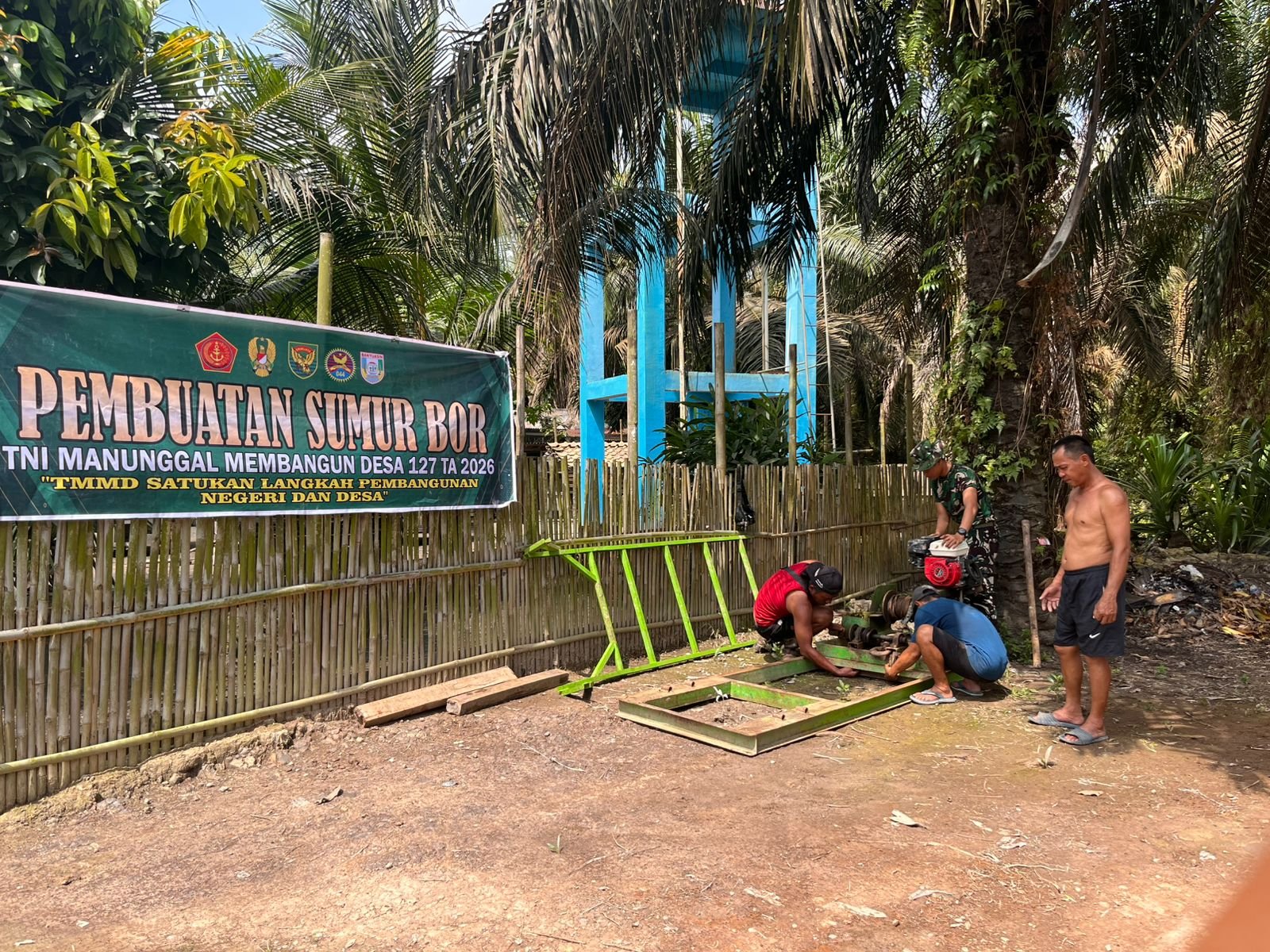Banyuasin, 25 Februari 2026 – Satgas TNI Manunggal Membangun Desa (TMMD) ke-127 dari Kodim 0430/BA, bersinergi dengan warga Desa Wonosari, Kecamatan Pulau Rimau, melanjutkan proyek pembangunan sumur bor pada titik kedua. Lokasi sumur bor ini terletak di Jalur 1, tepat di belakang rumah Kepala Desa.