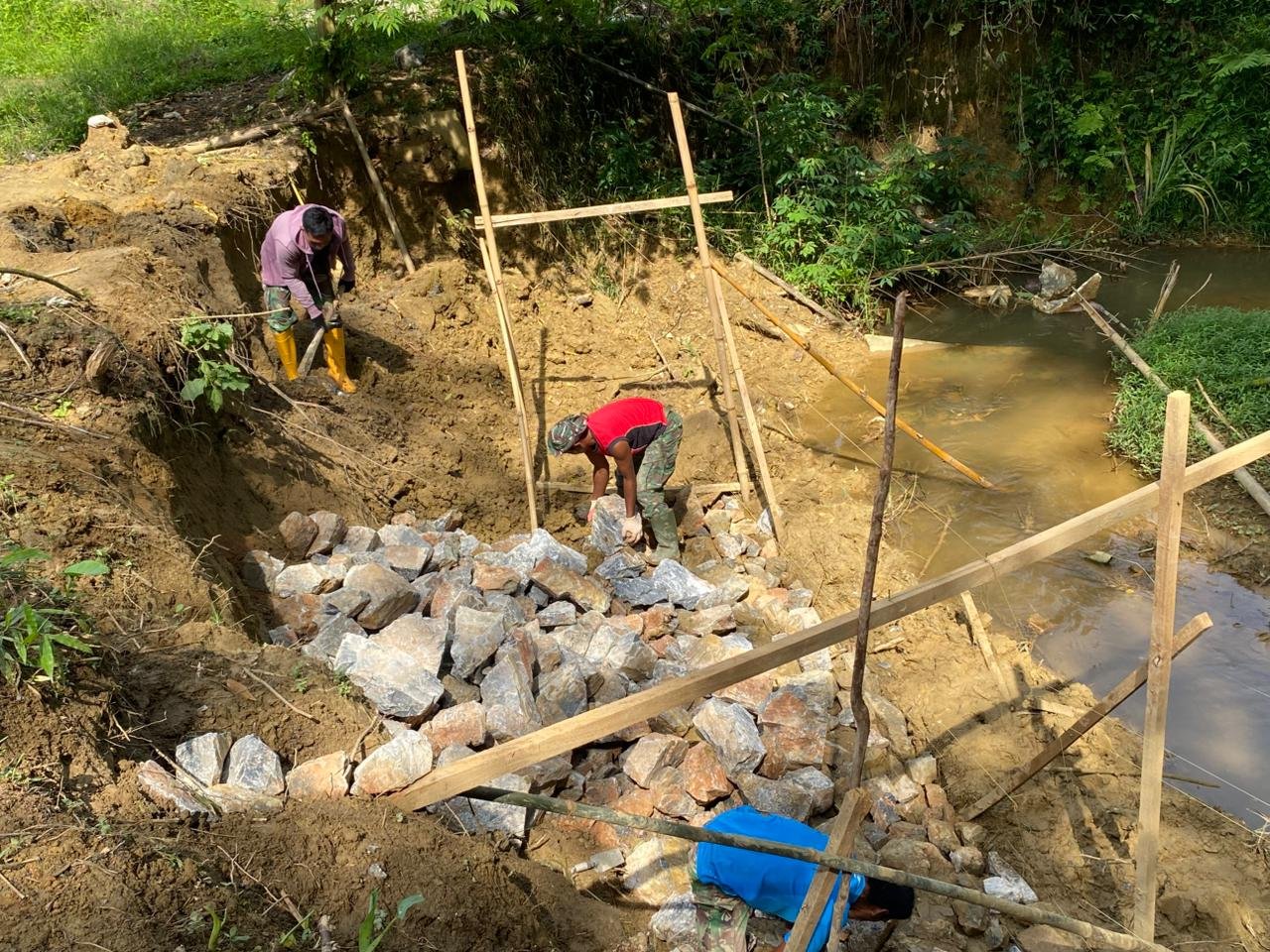 Kendari — Personel Satgas TMMD ke-127 dari Kodim 1417/Kendari melanjutkan pembangunan infrastruktur dengan fokus pada pengerjaan talud di Kelurahan Anggoeya, Kota Kendari, pada Sabtu (7/3). Dalam suasana terik, para prajurit TNI bekerja sama dengan masyarakat setempat untuk menyusun batu dan mencampur adukan semen, guna memperkuat struktur tebing di sepanjang aliran air. Pembangunan talud ini merupakan langkah penting untuk mencegah ancaman erosi dan longsor yang sering terjadi saat musim hujan. Diharapkan, infrastruktur tersebut dapat melindungi lingkungan permukiman warga di sekitarnya. Dengan semangat kebersamaan yang tinggi, proyek pembangunan talud ini diharapkan memberikan manfaat yang signifikan bagi masyarakat Kelurahan Anggoeya dalam menjaga keamanan dan ketahanan kawasan mereka.