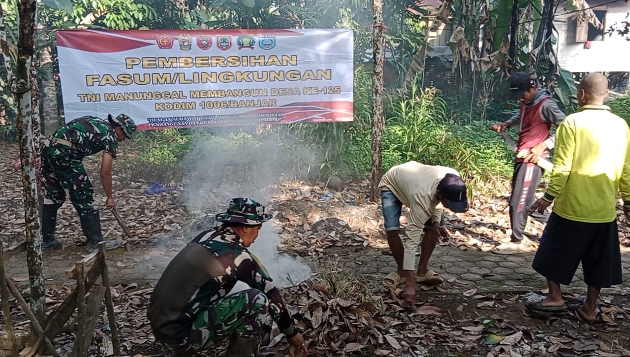 Pembersihan Lingkungan Dilakukan Satgas TMMD Ke-125 Kodim 1006/Banjar