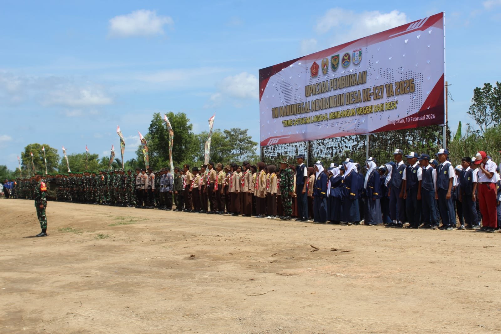 Upacara pembukaan dihadiri oleh berbagai pihak, termasuk pejabat dari TNI, Polri, pemerintah daerah, serta tokoh masyarakat dan pemuda setempat. Kehadiran beragam kalangan ini mencerminkan dukungan kuat terhadap inisiatif pembangunan desa yang menjadi fokus dalam program ini.