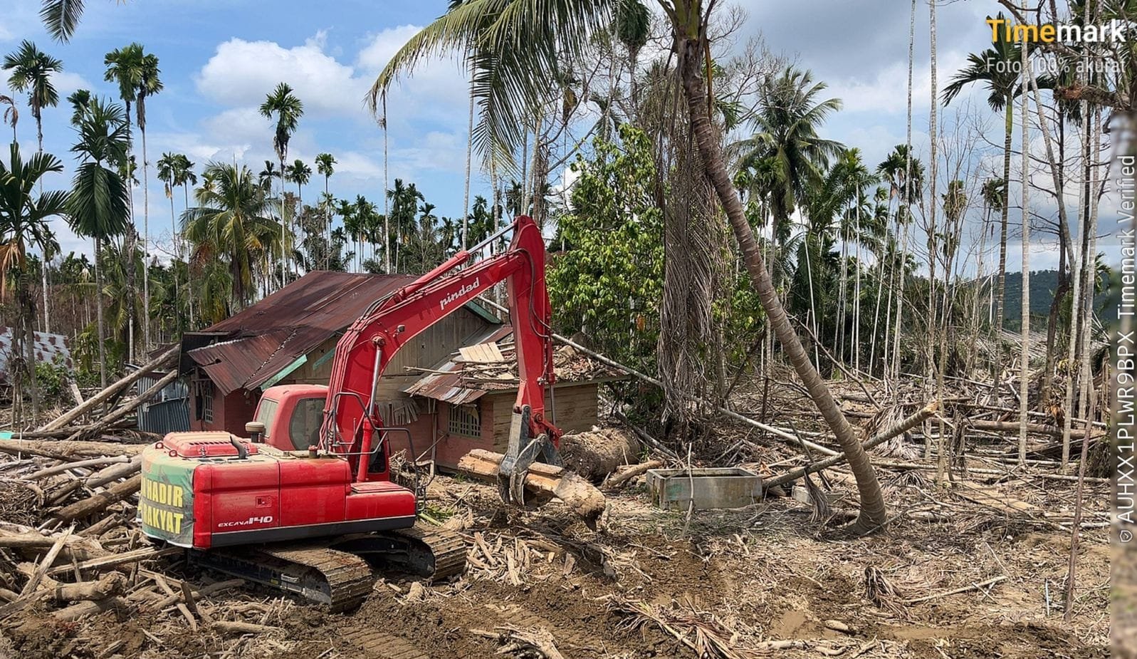 Di lokasi kejadian, alat berat jenis beko terlihat beroperasi untuk mengangkat tumpukan kayu besar yang berserakan akibat banjir. Pembersihan material kayu yang menumpuk di sekitar rumah dan kebun warga menjadi prioritas, agar kerusakan lebih lanjut bisa dihindari dan aktivitas masyarakat bisa pulih segera.
