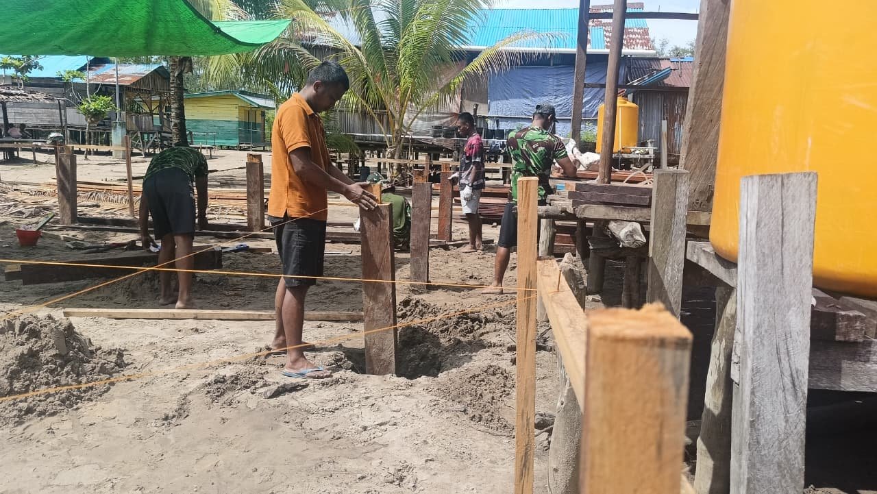 Timika — Dalam usaha memenuhi target yang telah ditentukan, Satgas TMMD ke-128 Kodim 1710/Mimika terus memacu pengerjaan seluruh proyek fisik di Kampung Keakwa.