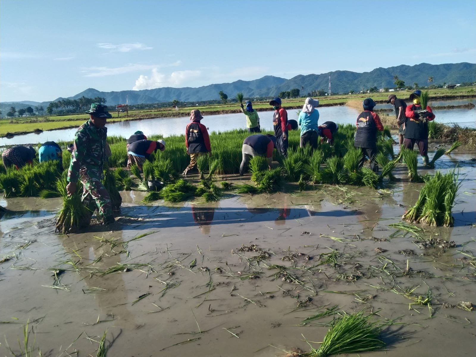 Pendampingan Tanam Padi oleh Babinsa Desa Lanta