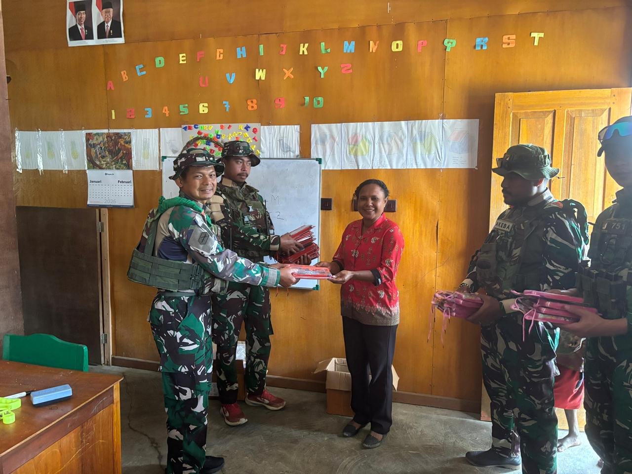 Wanbakon, Distrik Serambakon, Pegunungan Bintang — Pos Serambakon dari Satgas Swasembada Yonif 751/Vira Jaya Sakti (VJS) melaksanakan anjangsana ke TK Wanbakon pada Senin, 9 Maret 2026. Kegiatan ini merupakan bagian dari pembinaan teritorial yang bersifat humanis dan edukatif. Tujuannya adalah untuk menanamkan nilai moral serta keimanan kepada Tuhan, di samping membentuk kebiasaan sopan santun pada anak-anak di daerah perbatasan.