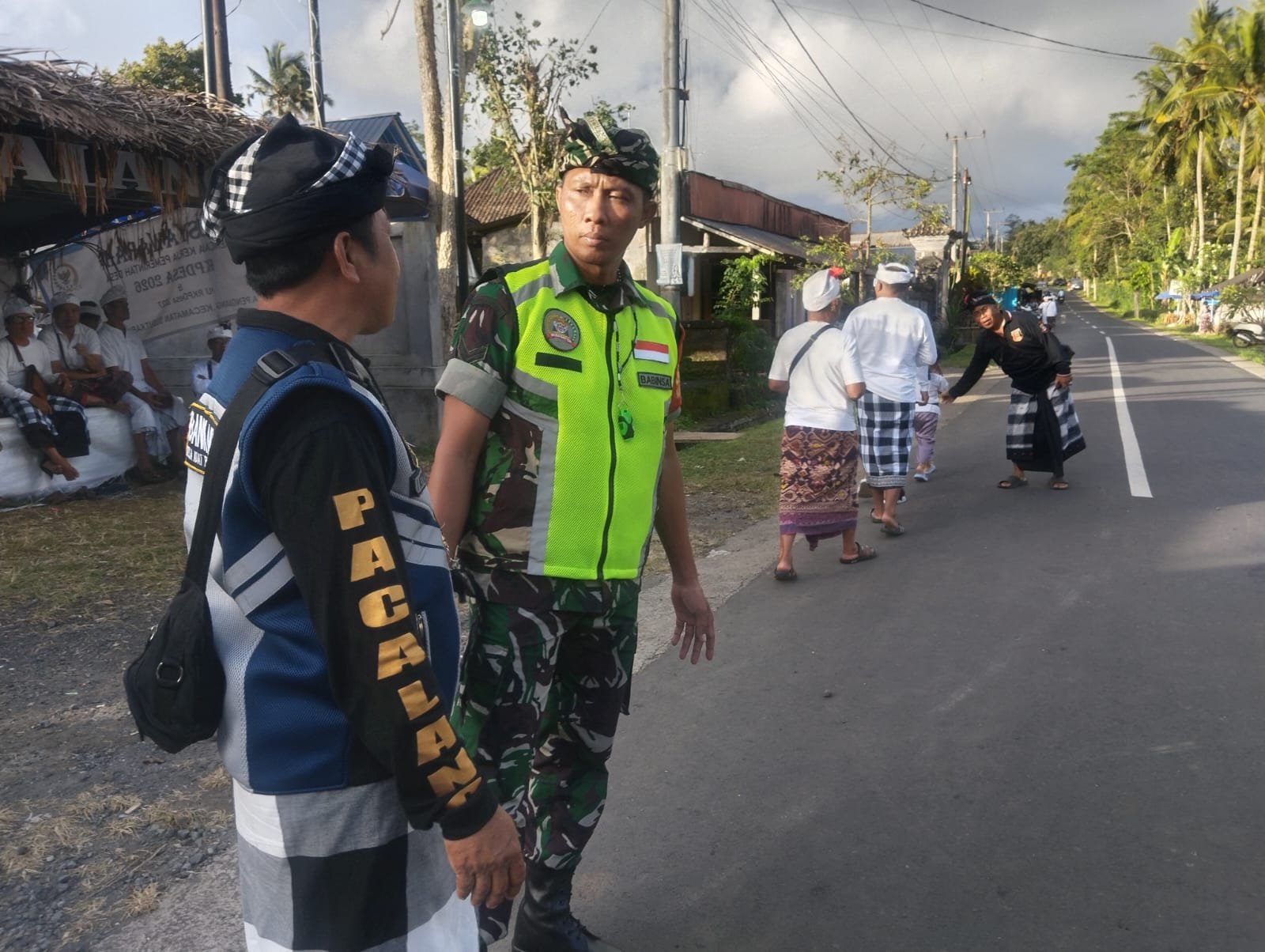 Pengamanan Upacara Ngerauhang Ida Sesuhunan oleh Babinsa Desa Pengiangan