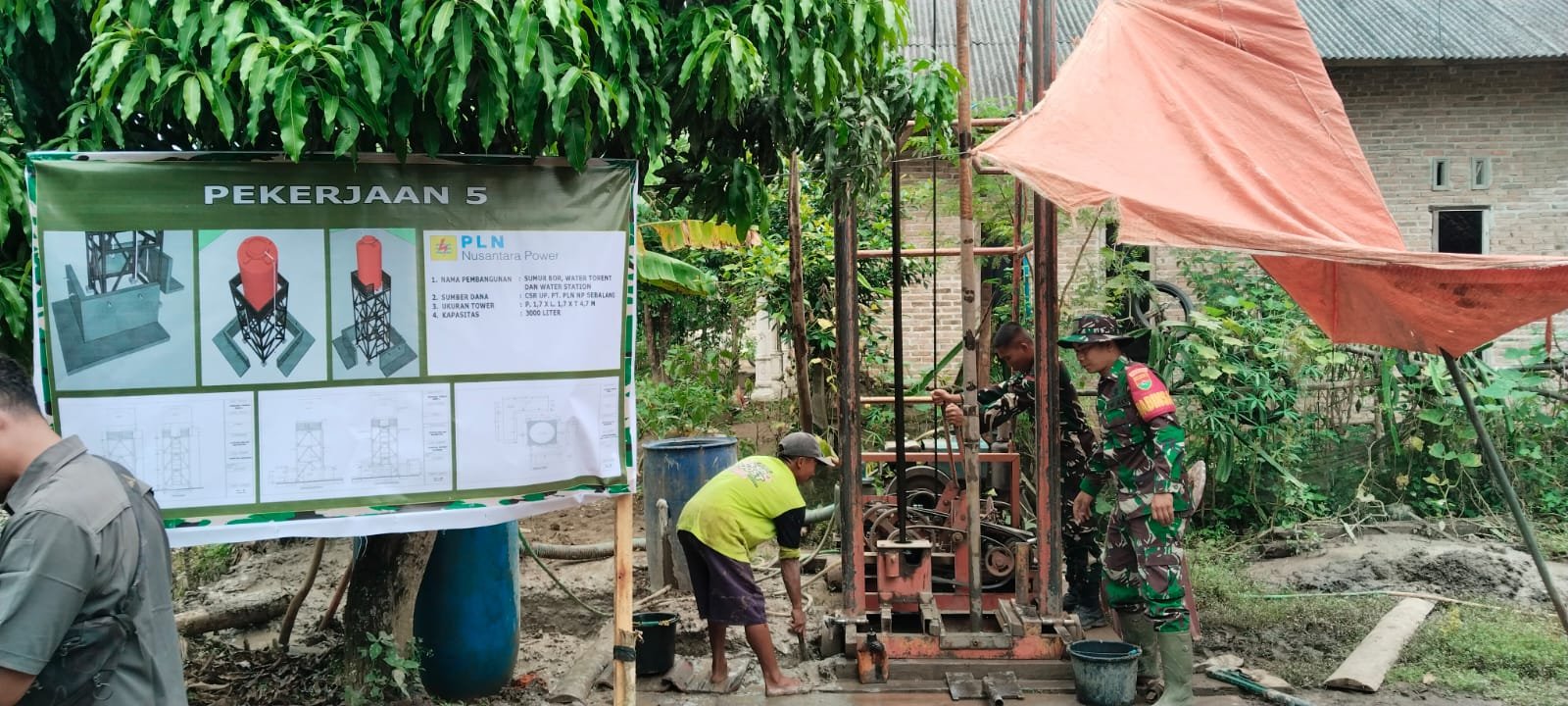 Pesawaran, Provinsi Lampung – Proses pengeboran sumur bor di Desa Kubu Batu, yang dikelola oleh Bapak Jamingan, berhasil mencapai kedalaman 30 meter. Pekerjaan ini merupakan salah satu kegiatan dalam program Tentara Manunggal Membangun Desa (TMMD) ke-127, yang dilaksanakan oleh Kodim 0421/LS.