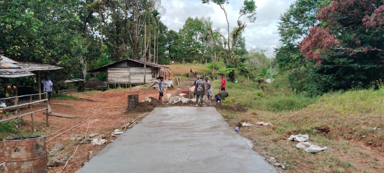 Boven Digoel – Upaya pembangunan infrastruktur jalan oleh Satgas TMMD Ke-126 Kodim 1711/BVD terus berlanjut dengan fokus utama pada tahap pengecoran. Senin (03/11/2025), para personel Satgas bersama warga terlihat kembali melanjutkan pengecoran di beberapa titik jalan yang telah dipasang pondasi sebelumnya.